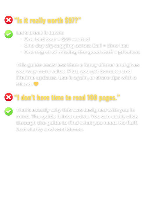 These bonuses are FREE when you grab the Ultimate Bali Travel Guide Bundle! Yes, FREE, giving you all the tools, insider knowledge, and confidence you need to explore Bali in the best way possible.